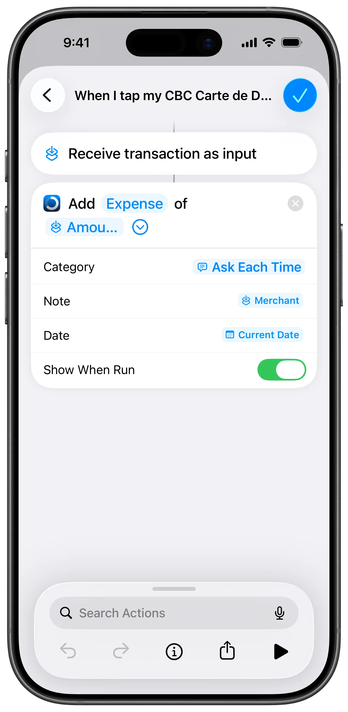 You’re all set. Every time you tap to pay with Apple Pay, the shortcut will trigger and ask you to categorize the expense.