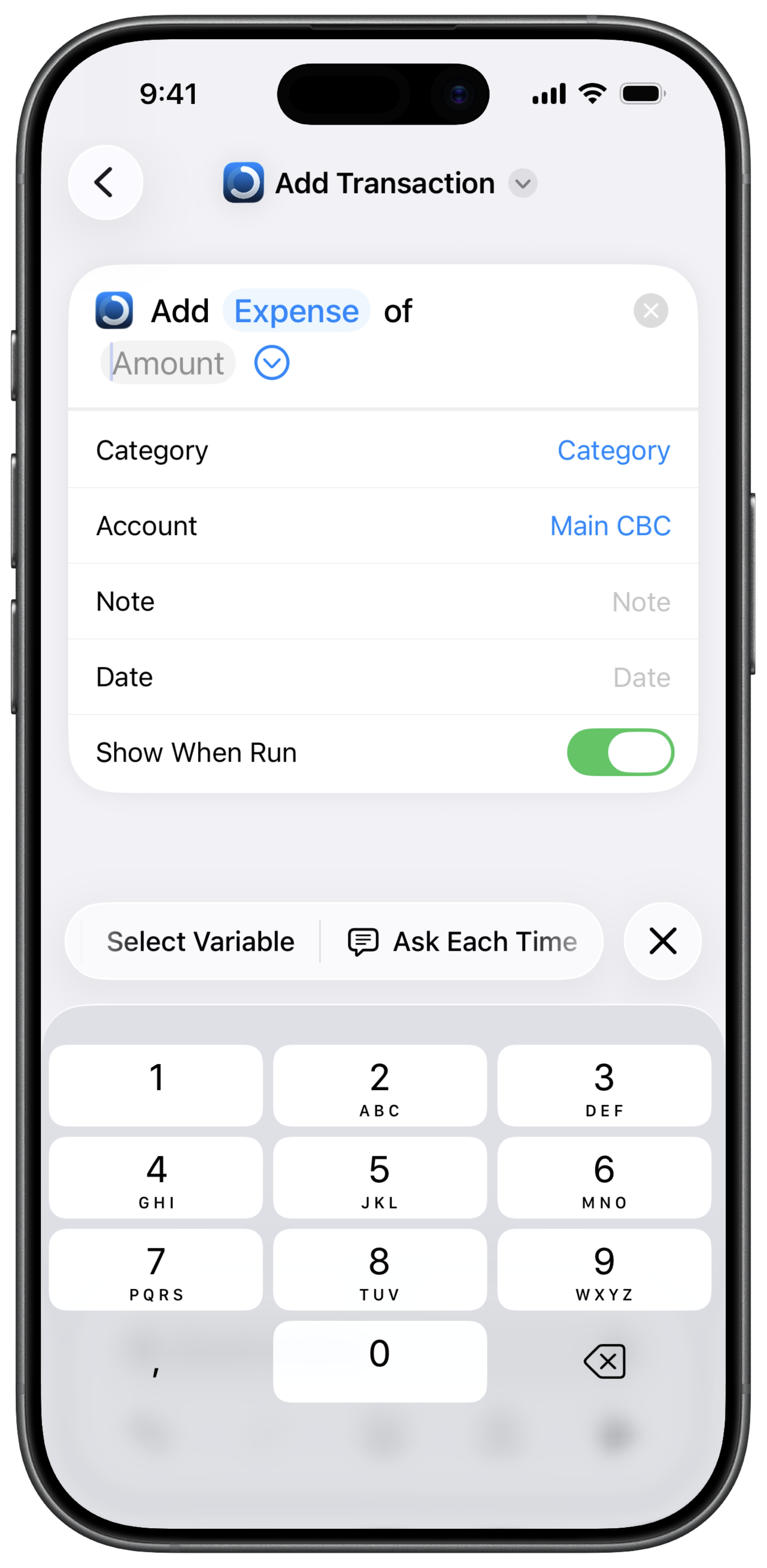 Show When Run — Displays a confirmation when the shortcut runs. Toggle it based on your preference.